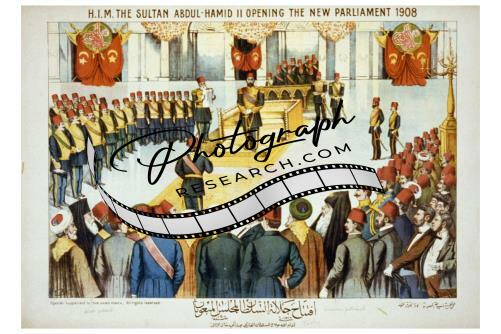 H.I.M. the Sultan Abdul-Hamid II opening the new Parliament,1908,Turkey