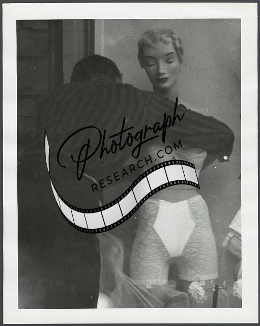[[Store display - man dressing a mannequin in lingerie]]