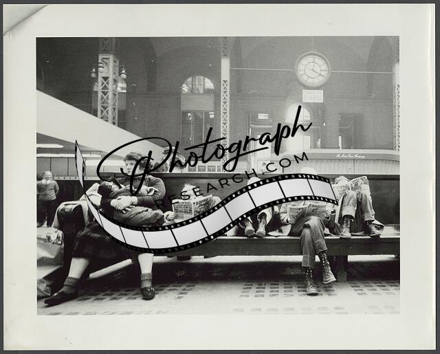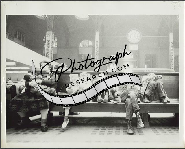 [[Woman and children seated on bench in Pennsylvania Station concourse]]