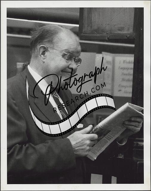 [[Man with glasses, half-length portrait, facing right, holding up and reading ne