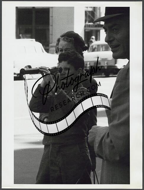 [[Boy with telescope to his eye on sidewalk in New York City]]