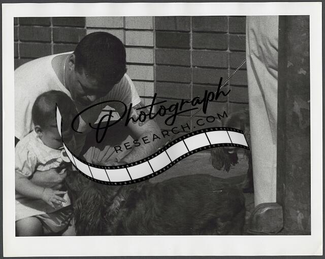 [[Man and baby petting a dog]]