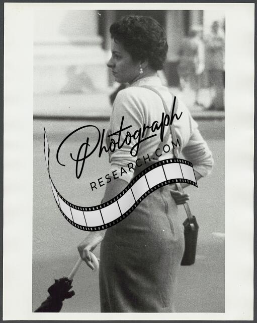 [[Woman, three-quarter length portrait, standing and facing left]]