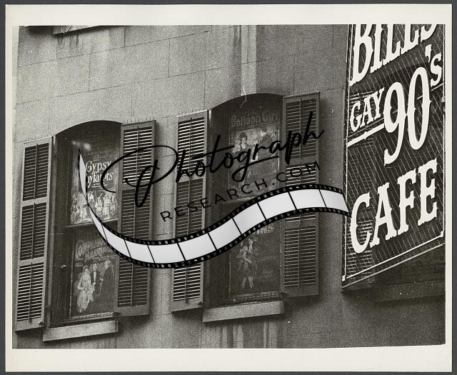 [[Advertisement posters outside Bill's Gay 90's Cafe]]
