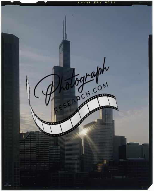 [[Sears Tower, Chicago, Illinois. Exterior. View with reflecting sun]]