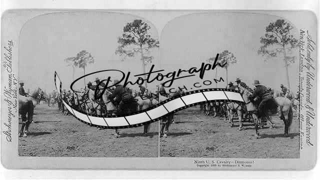 Ninth U.S. Cavalry: Dismount!,Soldiers Dismounting horses,c1898,Photo,military