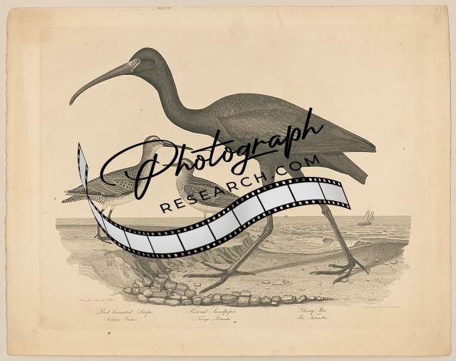 Peals egret heron. Esquimaux carlew. Scolopaccous courlan