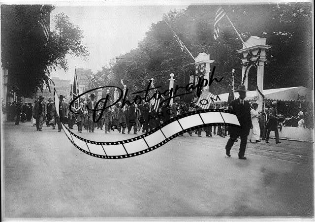 Confederate Veterans Reunion,Washington,DC,1917,US Flags,people walking,trees