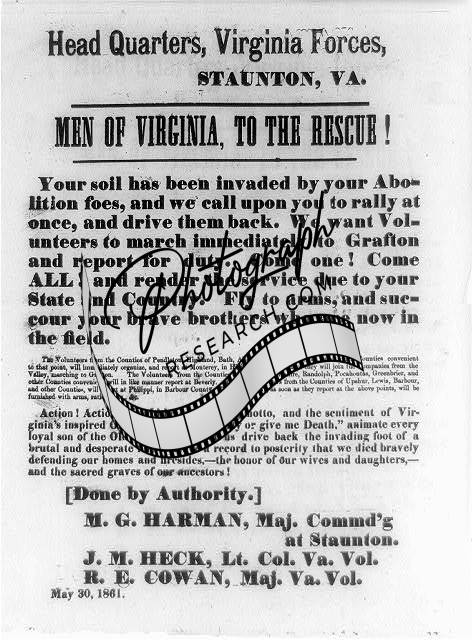 Headquaters, Virginia forces. Stauten, Va. Men of Virginia to the rescue!...May