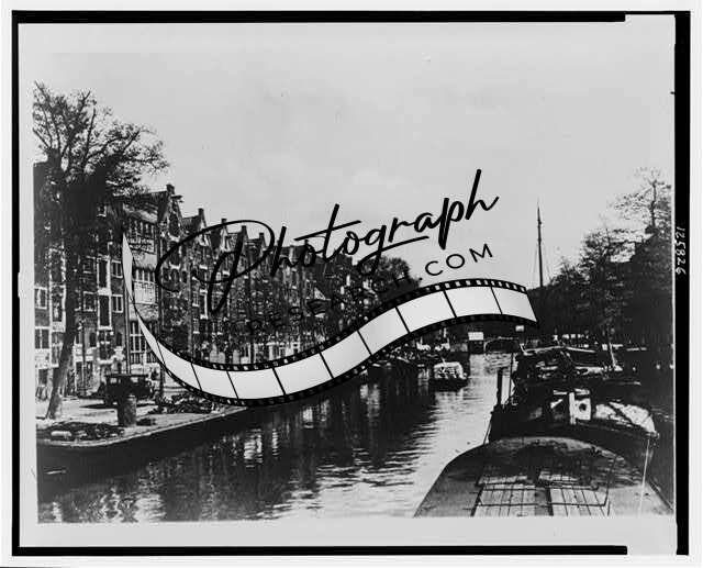 Street along a Gracht,Canal,Rotterdam,Holland,1935-1940,Houses,Boats