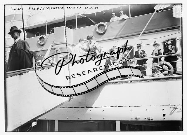Mrs. F.W. Vanderbilt arriving,Louise Holmes Anthony Torrance,ship,August 1914
