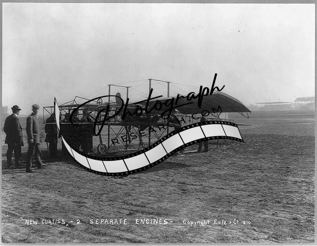 Men inspecting airplane,New Curtiss,2 seperate engines