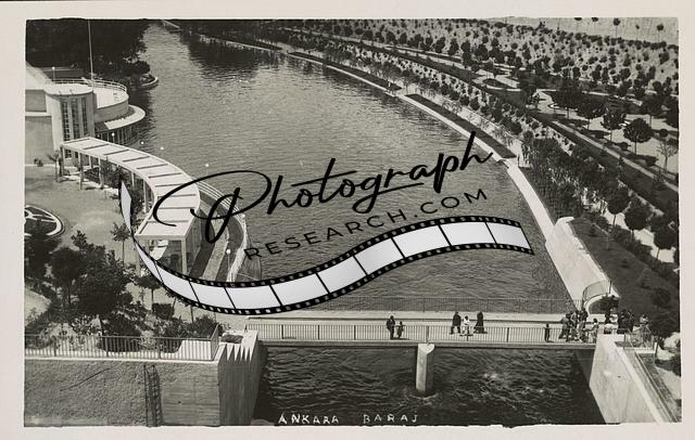 Ankara baraj,Aerial View,People,Pedestrian Bridge,Cubuk Dam,Turkey,c1940