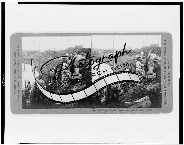Photo of Stereograph,Loading holes w/ dynamite,Panama Canal Construction,c1910