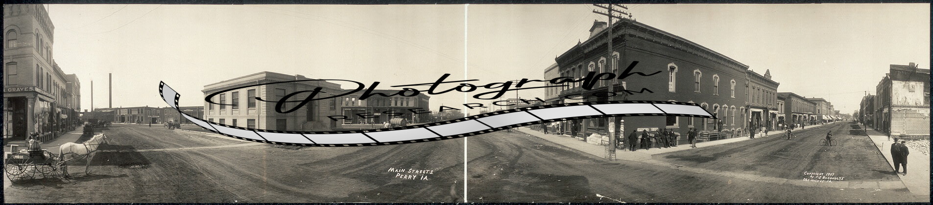 1907 Panoramic: Main streets,Perry,IA Iowa