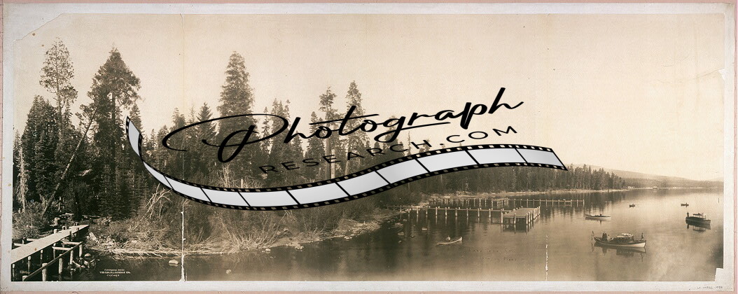 1908 Panoramic: Lake Tahoe,California,showing piers