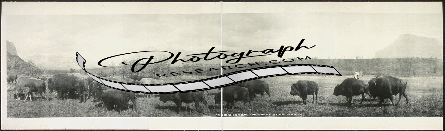 1907 Panoramic: The Buffalo herd at Banff, Alberta,Canada