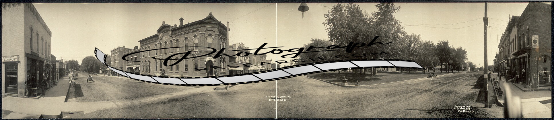 1907 Panoramic: Cherry,State Sts.,Jefferson,Greene County,IA,Iowa