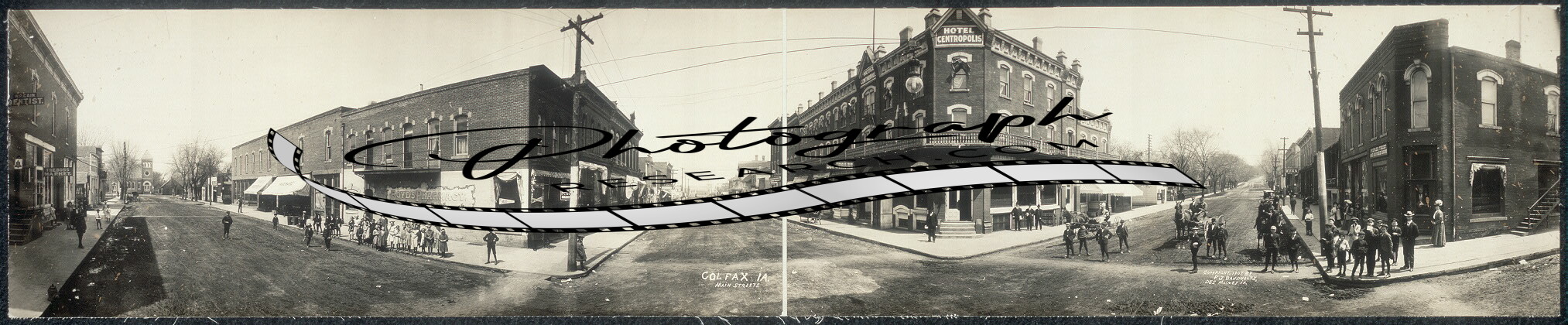 1907 Panorama: Colfax,Jasper County,Iowa,IA,main streets 50054