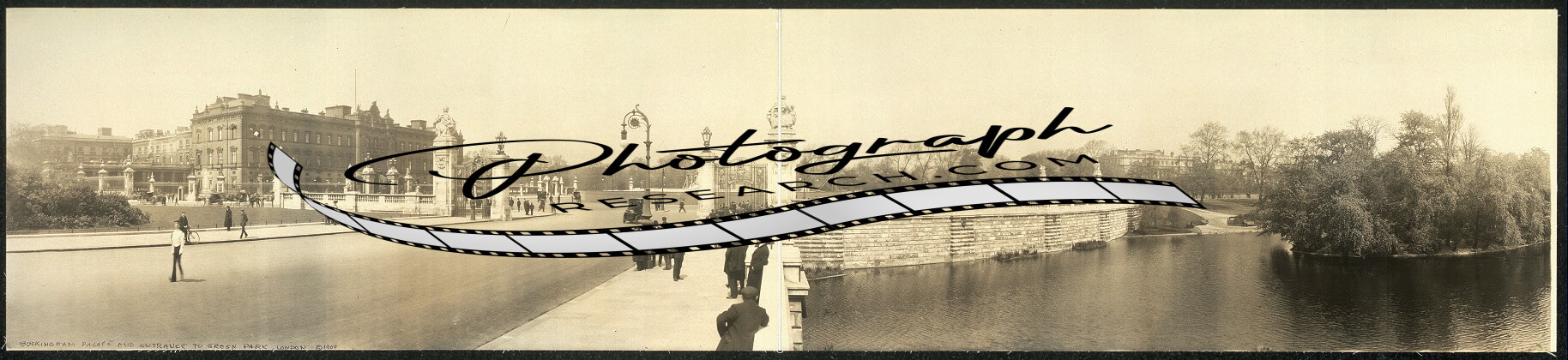 1909 Panoramic view of Buckingham Palace,entrance to Green Park,London