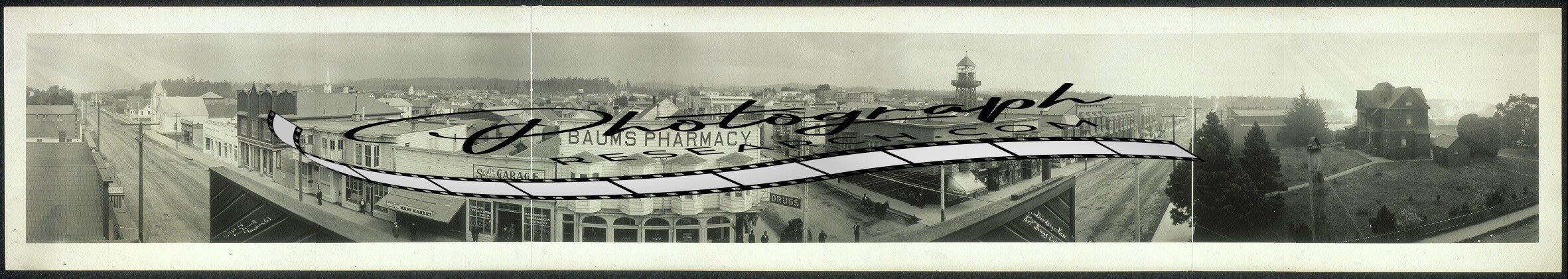 1911 Panoramic: Birdseye view of Fort Bragg,California,Baum's pharmacy,Mendocino