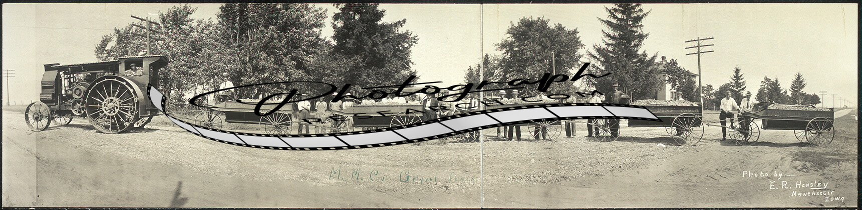 1913 Panoramic: M.M. Company's gravel train tractor cart wagon