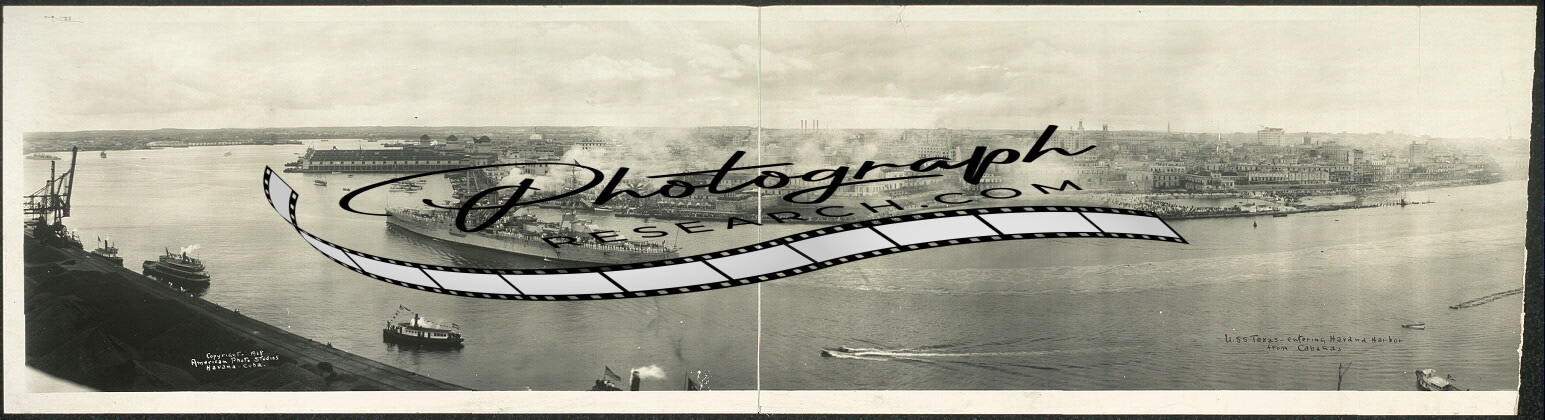 1928 Panoramic: U.S.S. Texas entering Havana Harbor from Cabanas,Cuba