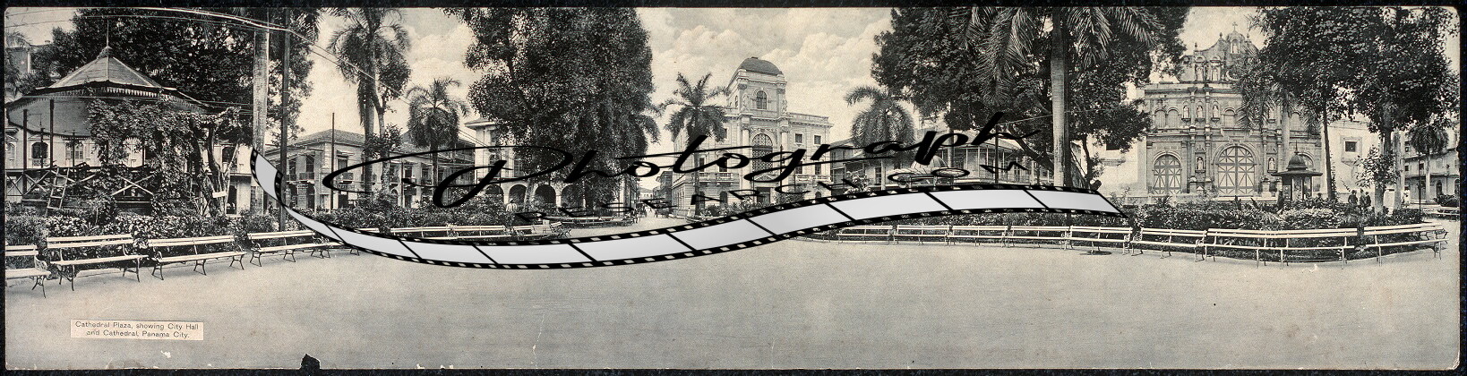 1913 Panoramic: Cathedral Plaza,showing City Hall,Cathedral,Panama City
