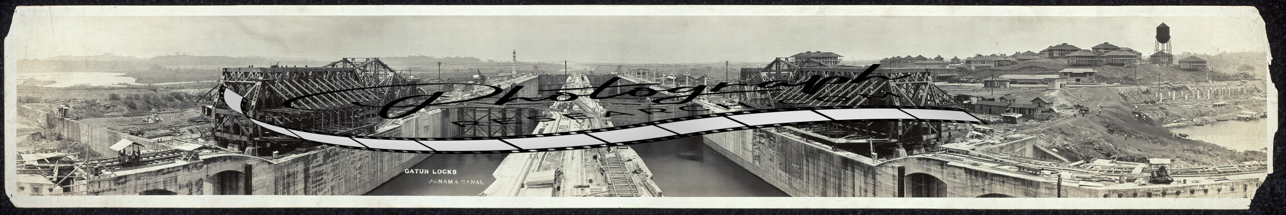 1913 Panoramic: Entrance to first lock of Panama Canal