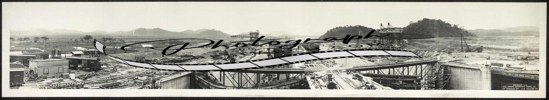 1913 Panoramic: Locks at Gatun,Panama Canal,taken during March 1913