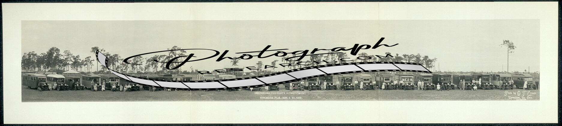 1932 Panoramic: Motoring camper tourists homecoming,Arcadia,Florida