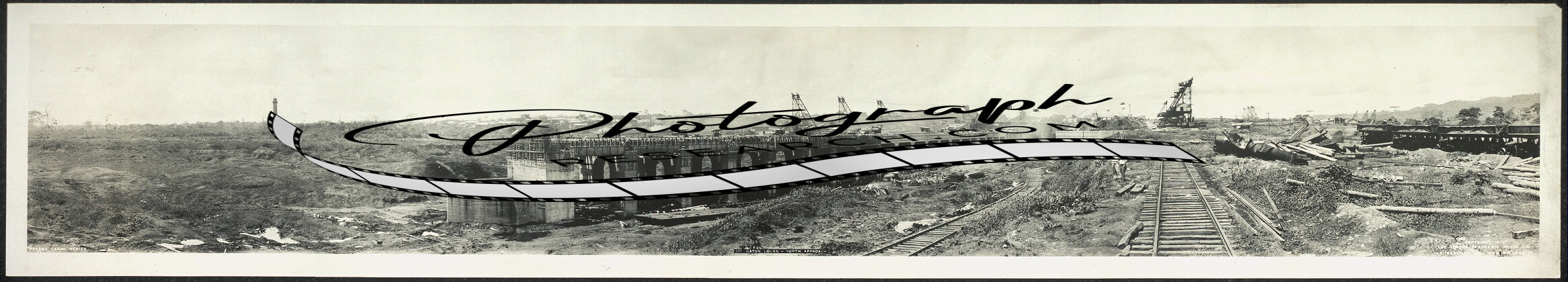 1913 Panoramic: Construction Gatun Locks - emergency dams, Panama Canal