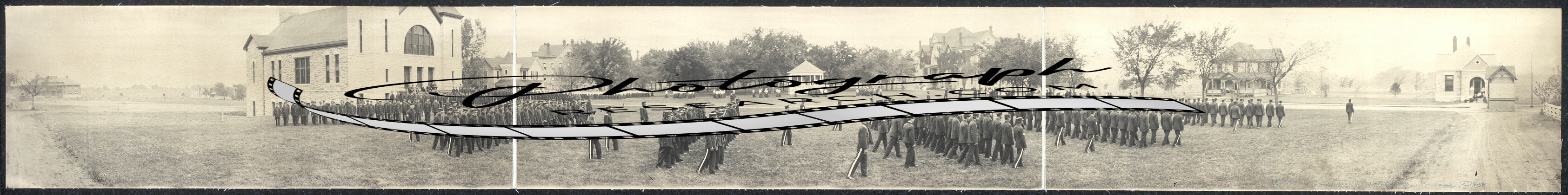 1908 Panoramic: Haskell Institute,Lawrence,Kansas,students on review