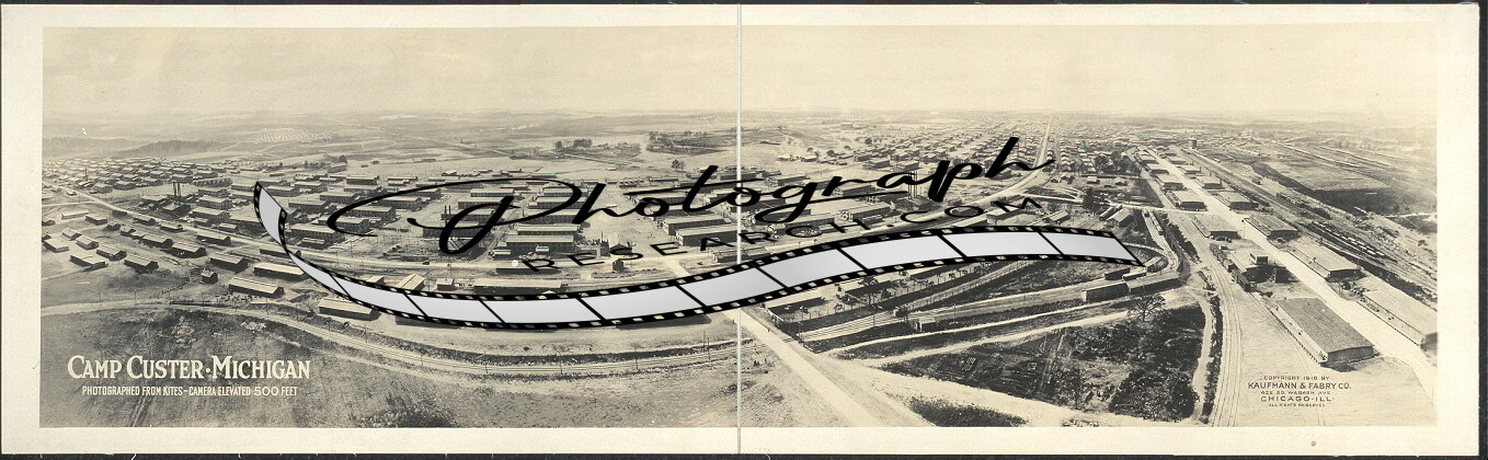 1918 Panoramic: Camp Custer,Michigan,photographed from kites,