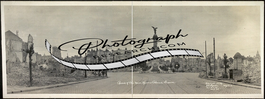 1919 Panoramic: Ruins of the main square,Rheims,France,WWI,World War I