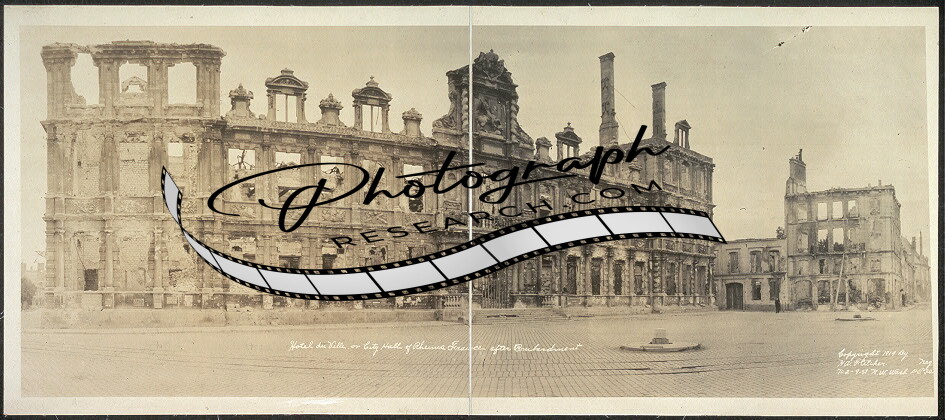 1919 Panoramic: Hotel du Ville or City Hall of Rheims,France after bombardment
