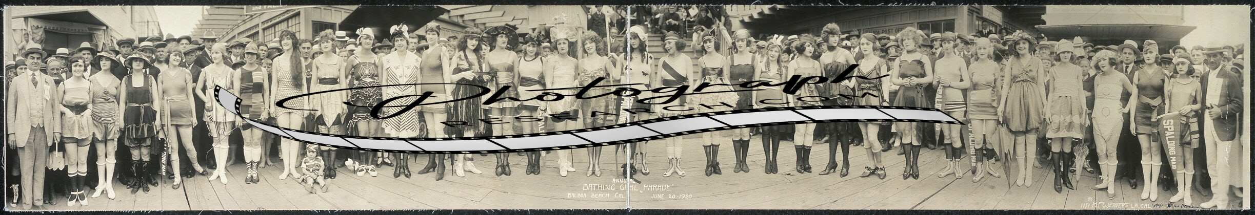 1920 Panoramic: Annual Bathing Girl Parade,Balboa Beach,California