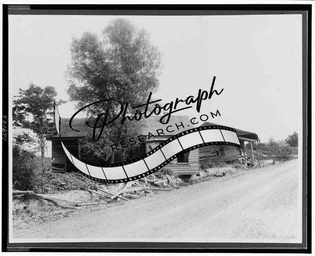 Dilapidated wooden buildings, 1927 Flood, Dirt Road