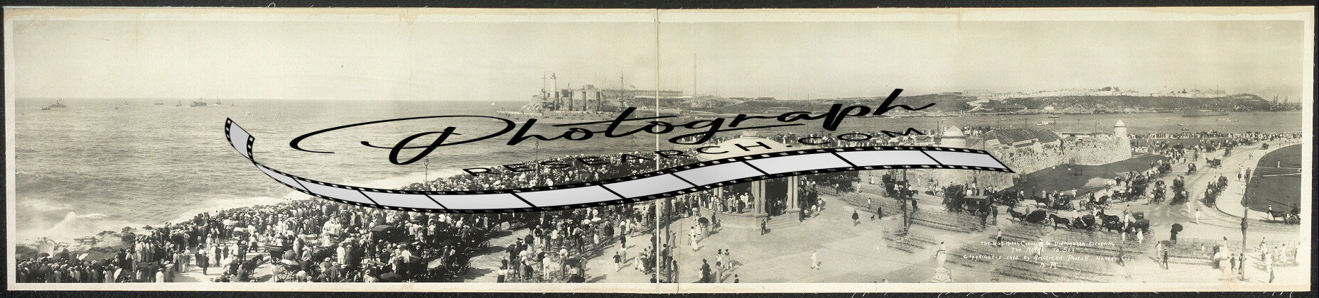 1928 Panoramic: U.S.S. Texas entering Havana Harbour from Malecon