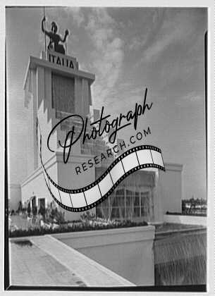 Title: World's Fair, Italian Line restaurant, Italian Building. Across waterfall, to other terrace