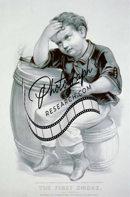 The first smoke: All wrong,c1870,Currier & Ives,Photograph,cigar,smoking,boy