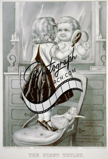 The first toilet,c1873,Currier & Ives,Photograph,small girl brushing her hair