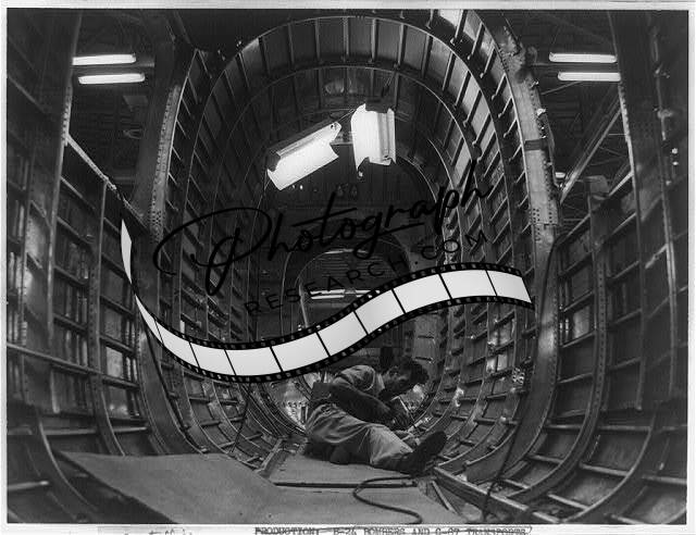 Installing parts,C-87 transport plane,tunnel,fuselage,Consolidated Aircraft,1942