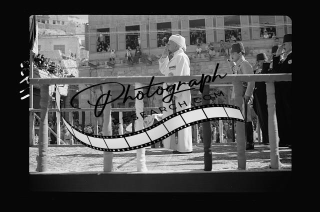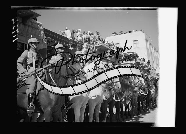 Title: Amman. 24th anniversary of Arab revolt under King Hussein & Lawrence, celebration Sept. 11, 1940. The parade in municipality square