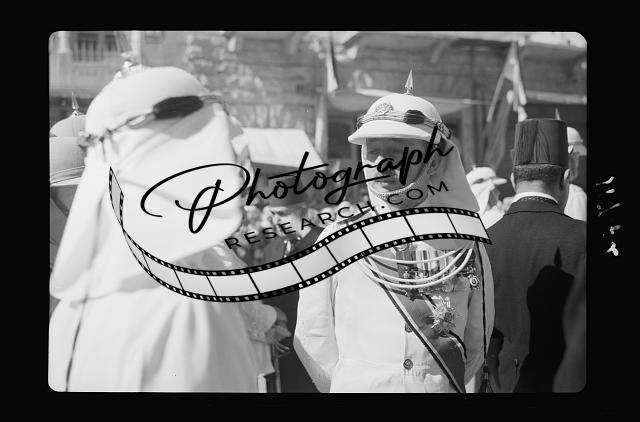 Title: Amman. 24th anniversary of Arab revolt under King Hussein & Lawrence, celebration Sept. 11, 1940. The Emir decorating an N.C.O. of the Arab Legion. Prince Naif stands behind his father, closer up