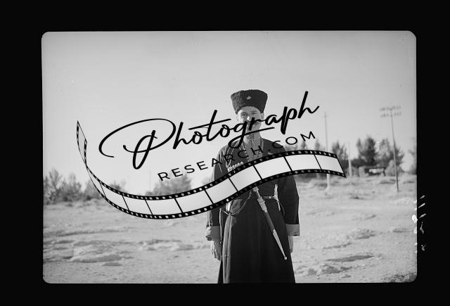 Title: Amman. 24th anniversary of Arab revolt under King Hussein & Lawrence, celebration Sept. 11, 1940. The Emir, etc. at salute on Palace steps, during the playing of national anthem
