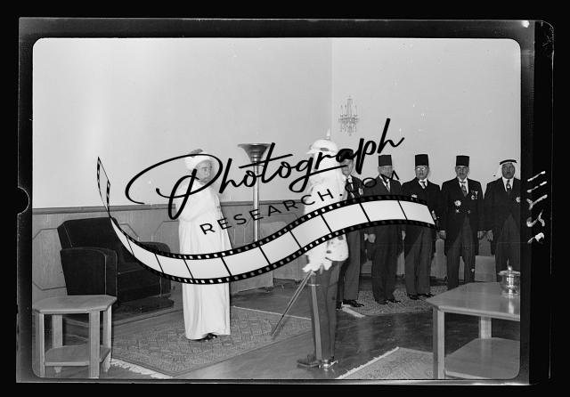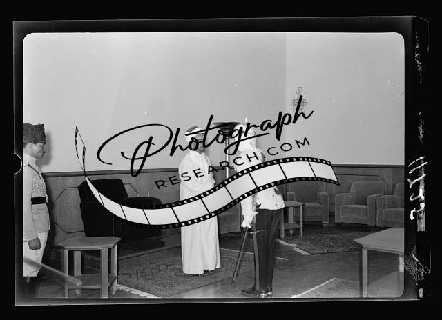 Title: Amman. 24th anniversary of Arab revolt under King Hussein & Lawrence, celebration Sept. 11, 1940. The Emir inspecting the Guard of Honour
