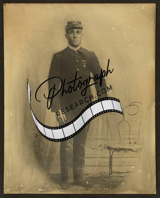 Summary: Photograph shows Frank R. Steward, head-and-shoulders portrait, wearing hat and uniform with United States Volunteer Infantry and crossed rifle insignia, facing front, during the Spanish-American War. (Re-identified as Frank Stewart by R. Cunningham, 2002. Re-identified with spelling 'Steward' by G. Murphy, 2011, citing Colored American Magazine, 2:3 [1901], 199 and 203)
