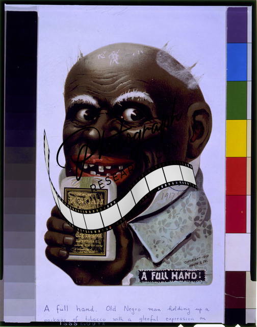 A full hand,Caricature,African American,holding package of tobacco,1890
