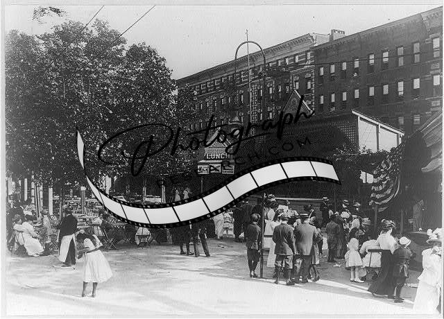 New York City bandstand,NYC,1900-1910,people gathered outside to watch